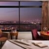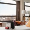 Suites include additional living space, upgraded amenities, and private balconies overlooking London.