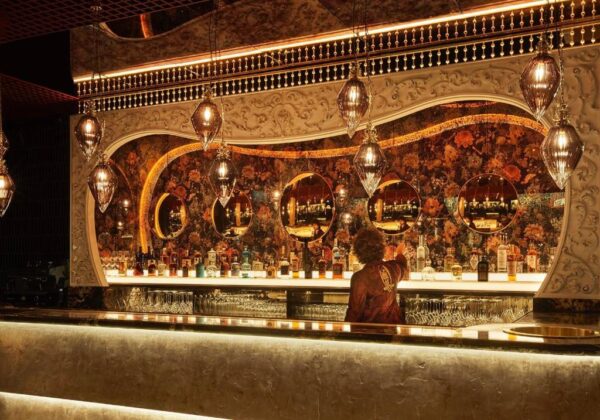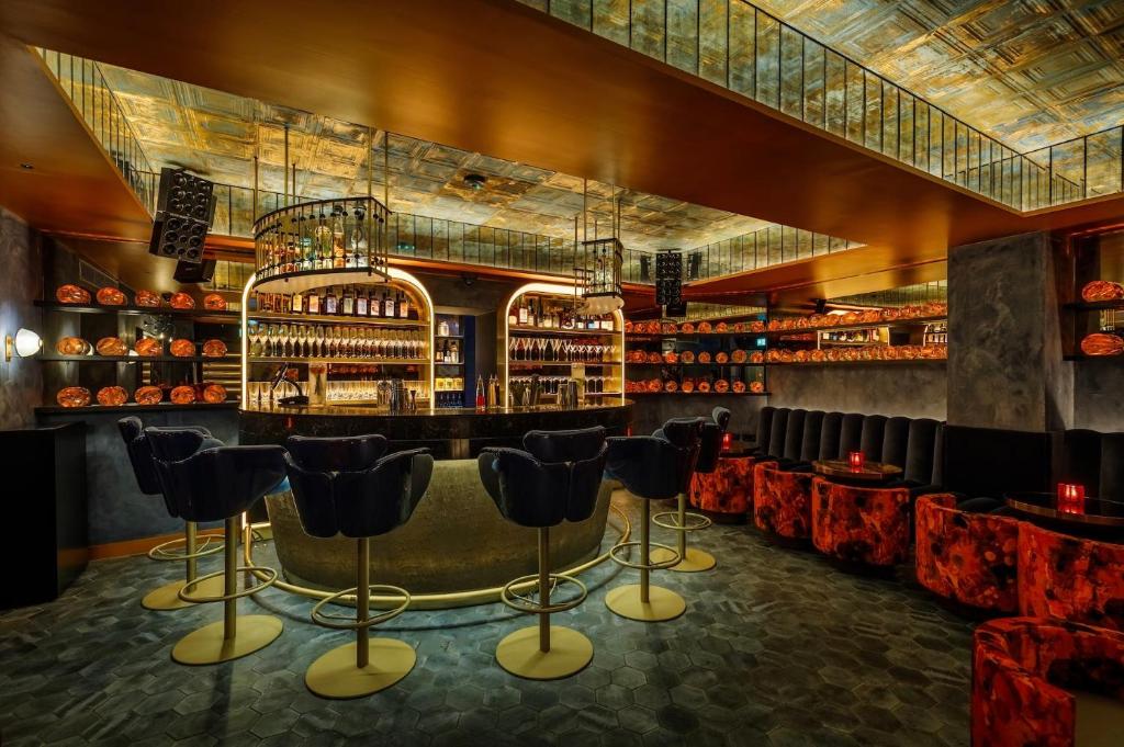 The hotel’s main bar is a sultry, intimate hideaway offering: