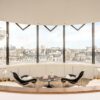 Floor-to-ceiling windows with cityscape views