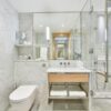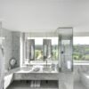 Sleek marble bathrooms with rainfall showers and premium toiletries