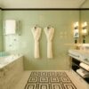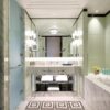 Spacious marble bathrooms with deep soaking tubs